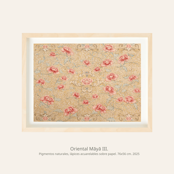 Oriental Māyā se presenta así como un tejido de símbolos, sensaciones e influencias orientales: una ensoñación visual que invita a perderse en la belleza de la forma, sin dejar de cuestionar qué hay detrás de ella.